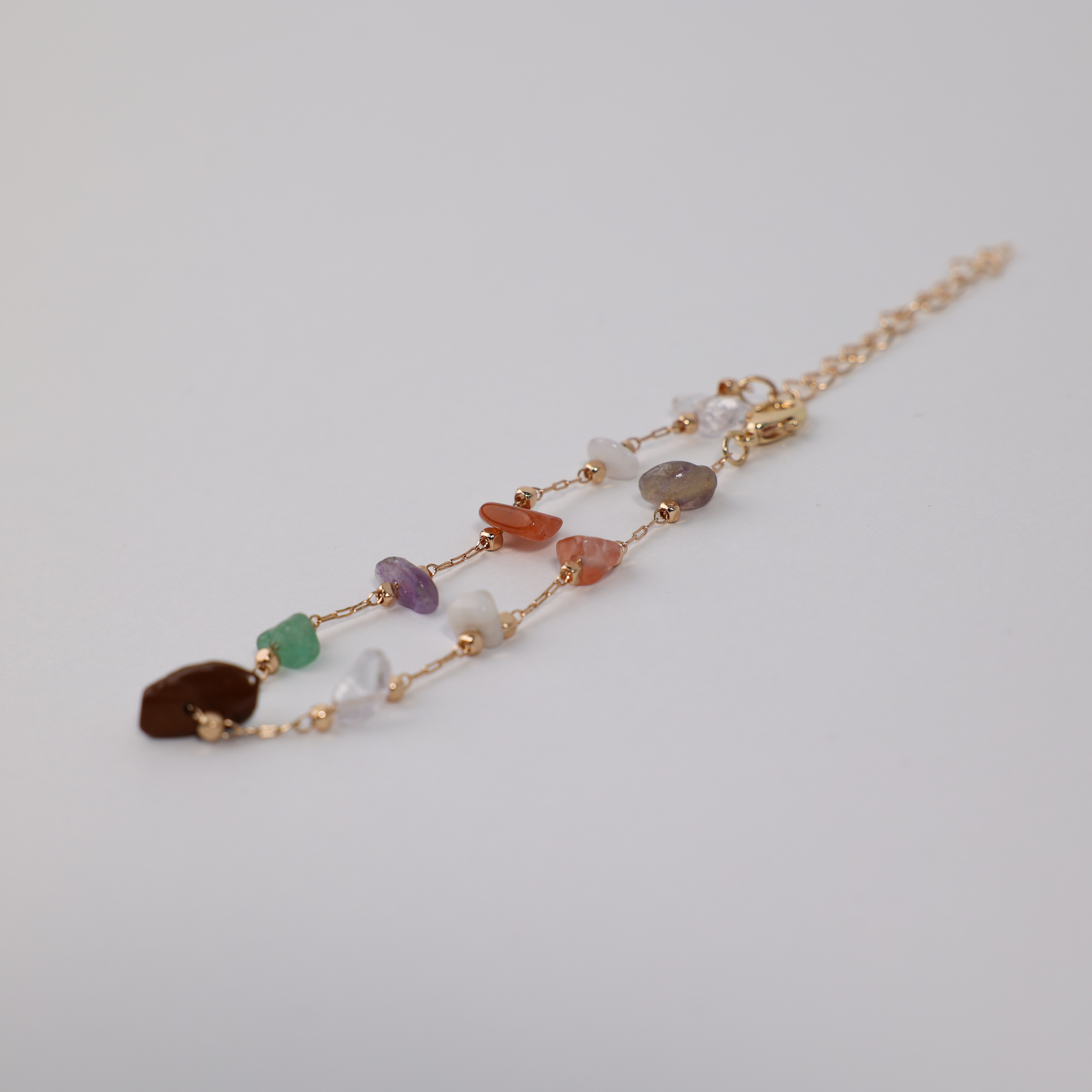 تضم مجموعة من الأحجار الفريدة مثل الأمثيست، الأفينتورين، العقيق، والكوارتز، لتمنحكِ مزيجًا متناغمًا من الطاقة، السلام، والحماية.