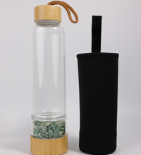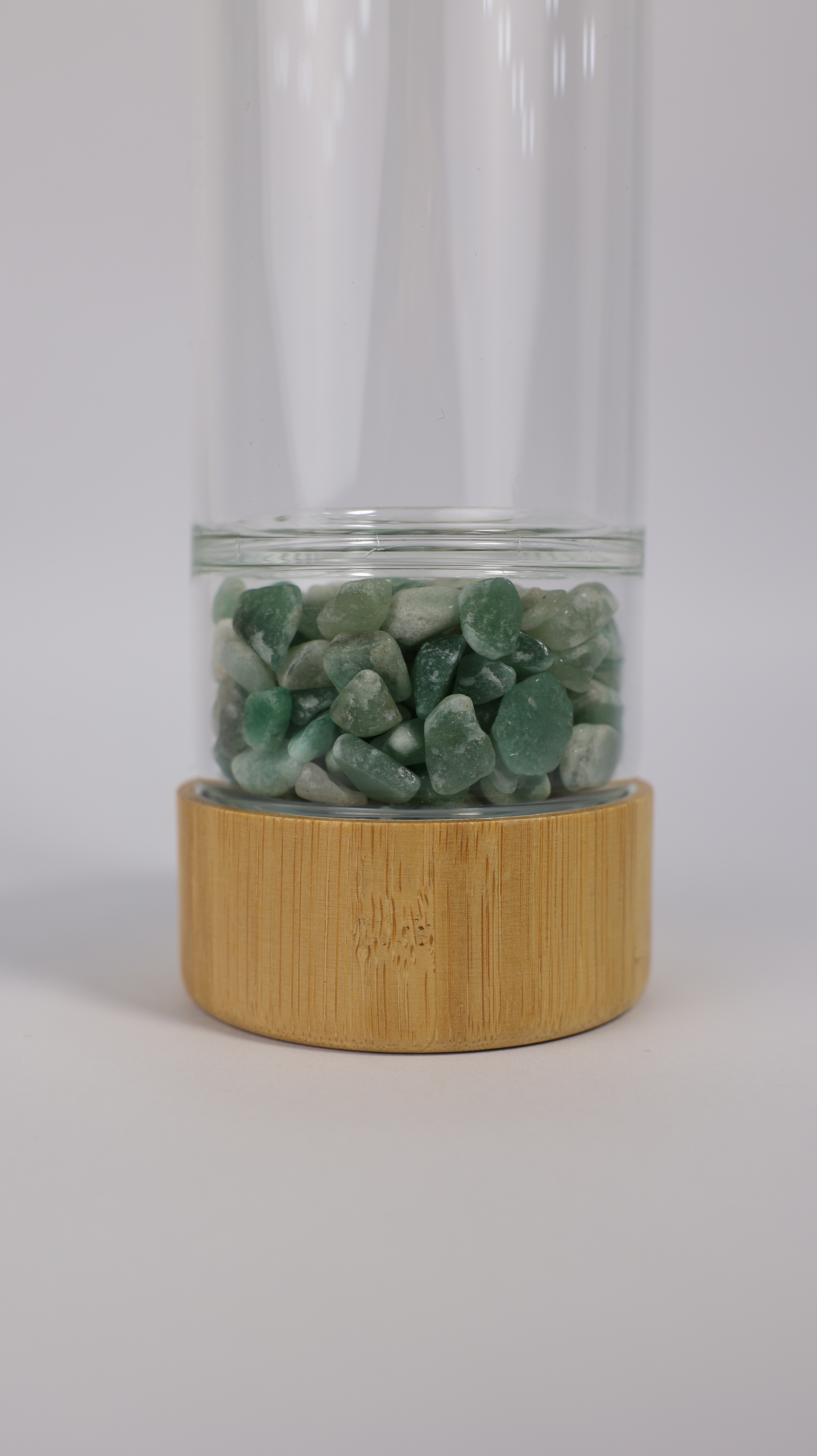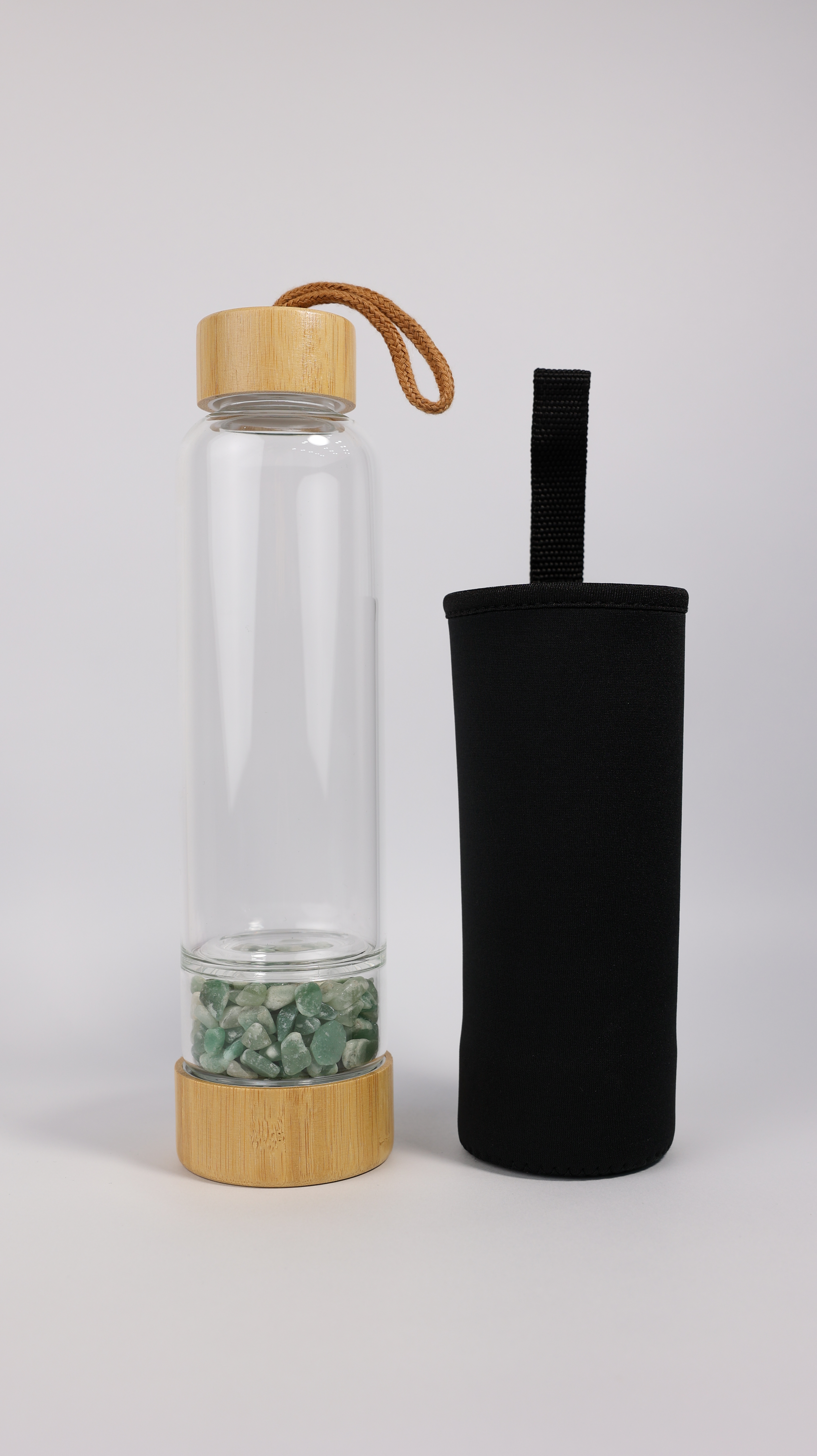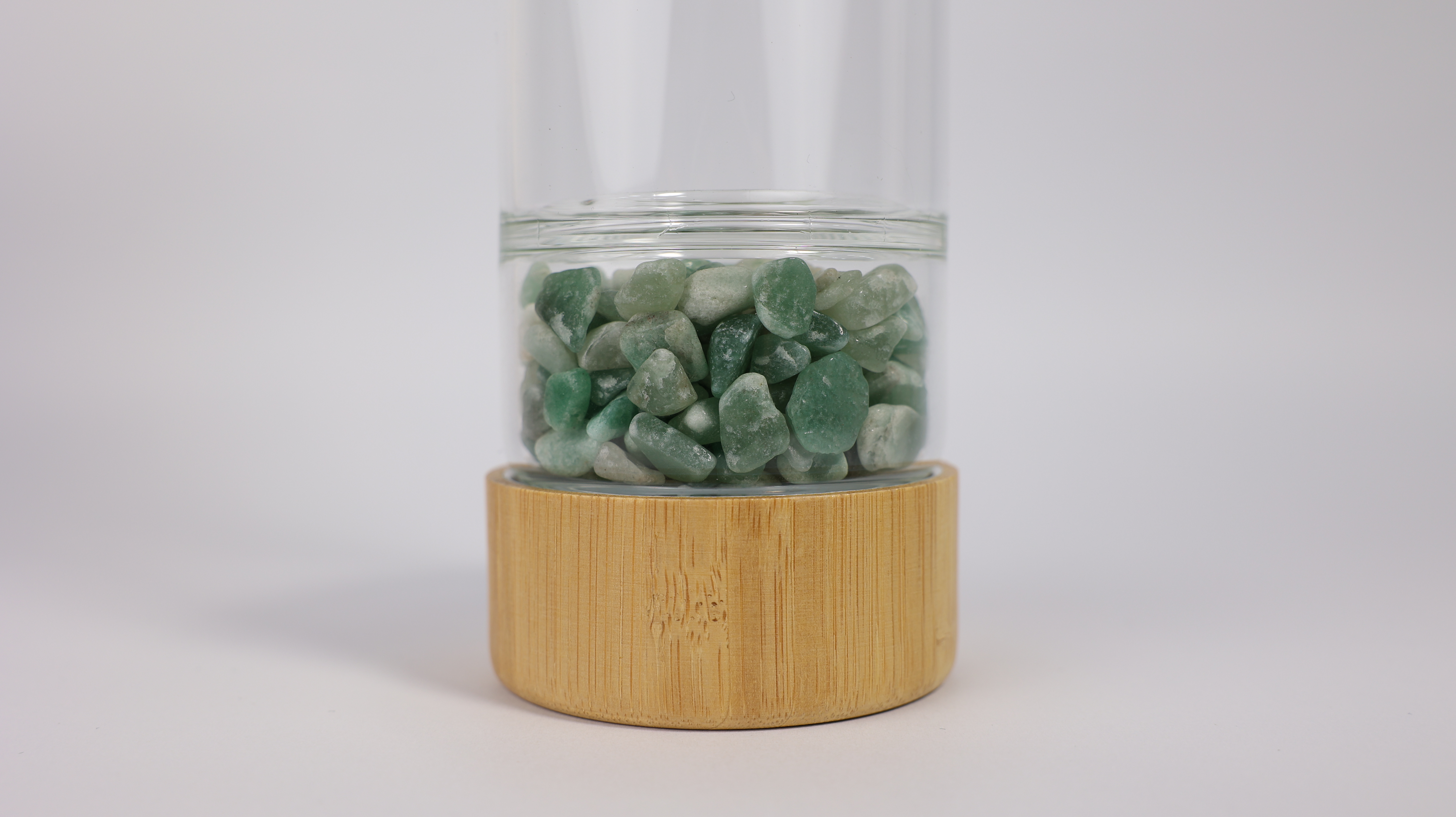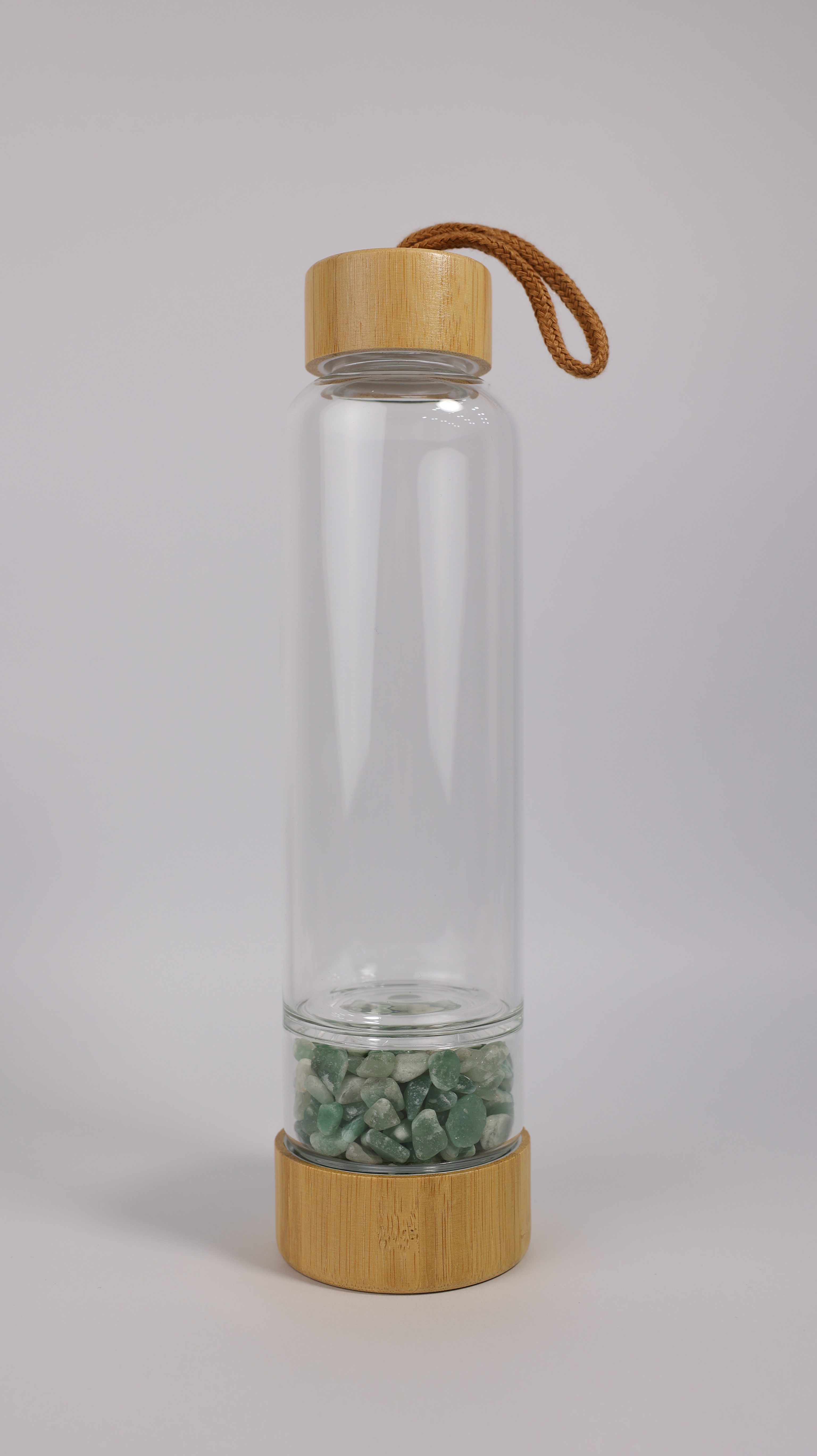 زجاجة ماء الكريستال + حجر الأفينتورين الأخضر